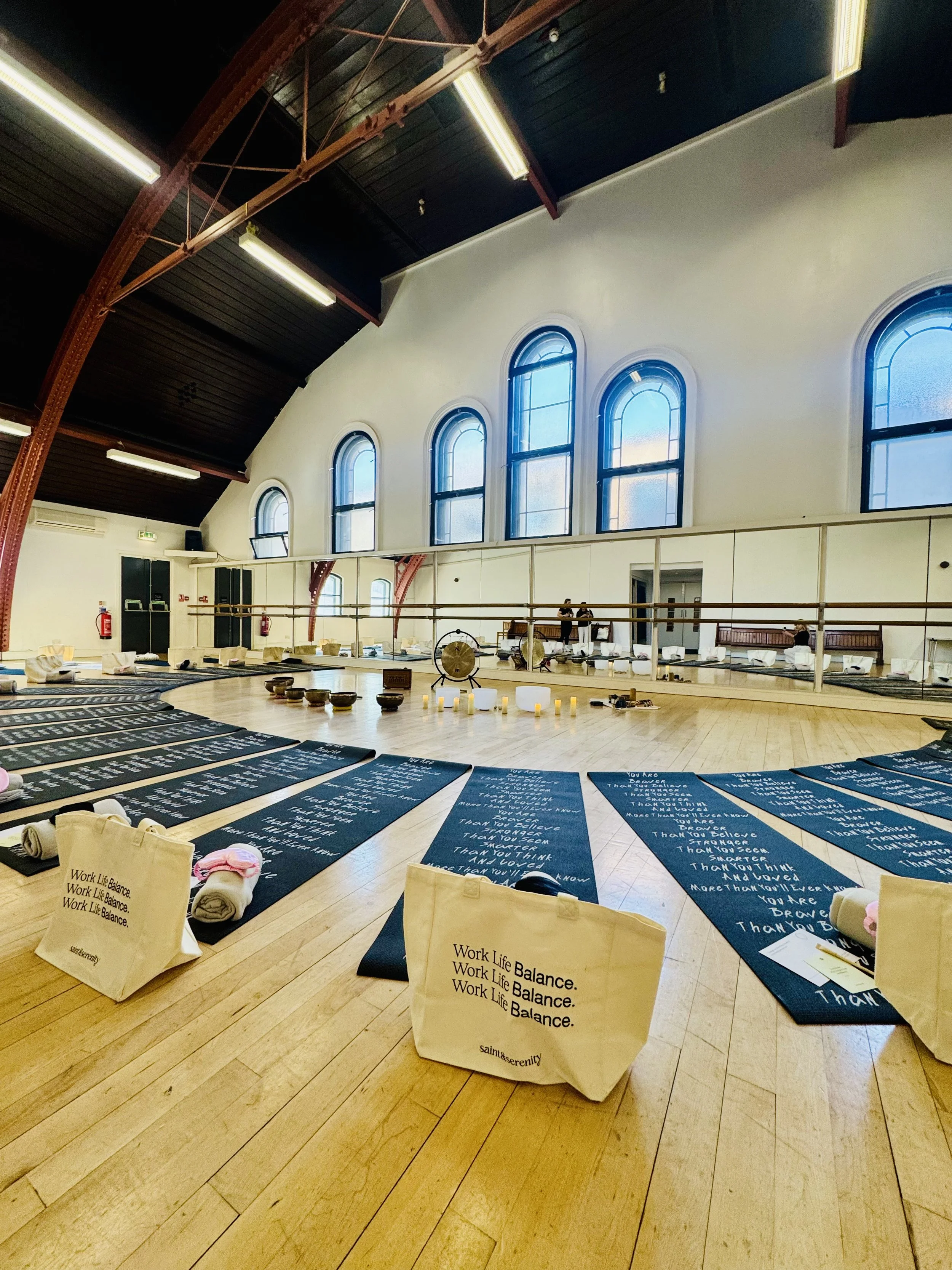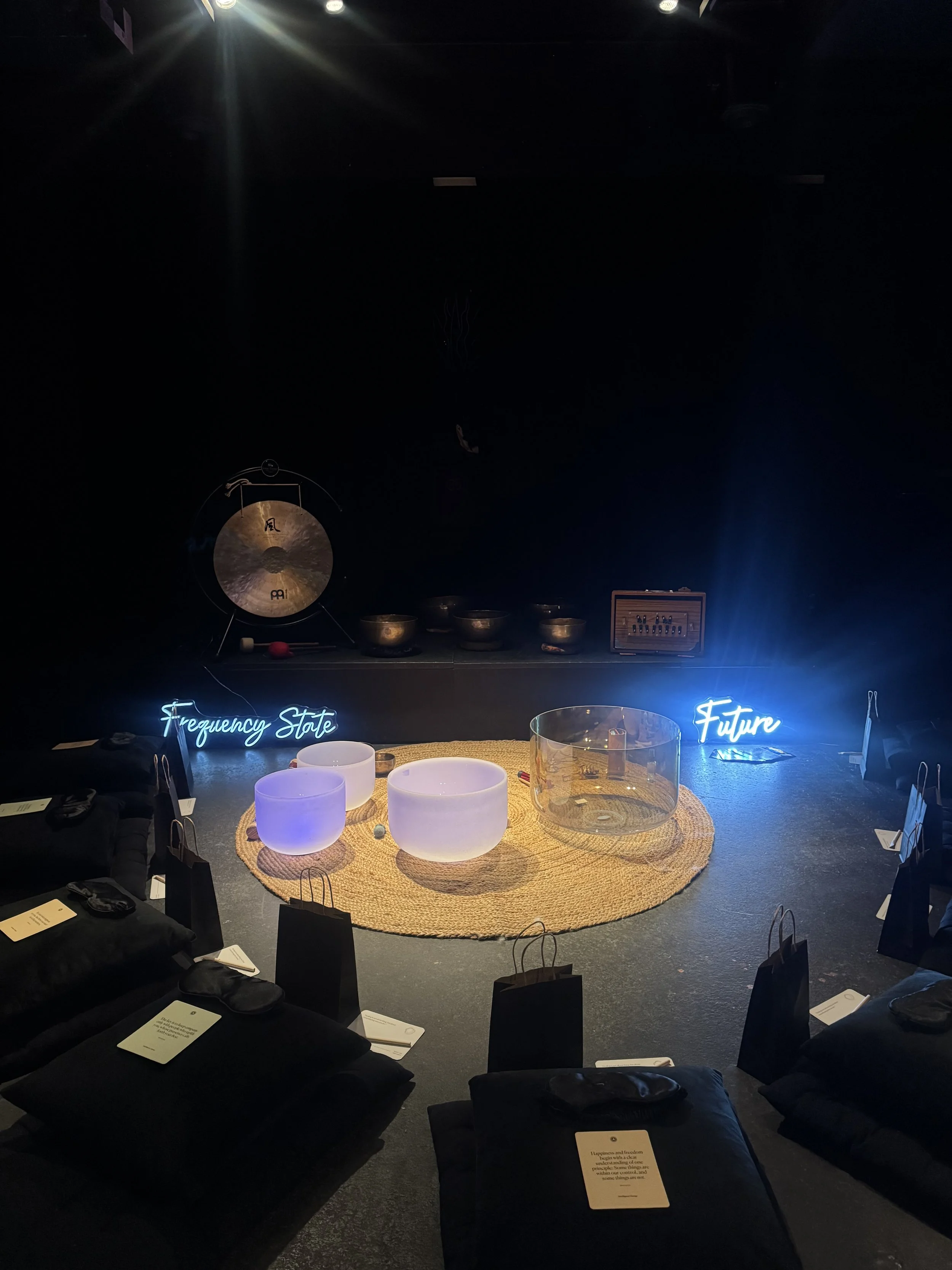 Small group sound sessions designed to support collective reset, focus, and balance within fast-paced environments.